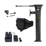 The Foil Assist is powered by two compact batteries housed in a waterproof box mounted on a lightweight eHarness (approx. 3.76 kg). This keeps your board free from extra weight and drag. With the batteries placed on your hips, the natural, fluid feel of foiling is preserved while still giving you full freedom of movement. The eHarness is buoyant and easy to remove. A cable runs neatly along the shorter board leash and connects the batteries to the eMast. The receiver integrated into the battery box ensures a stable and reliable connection between the remote and the motor throughout your entire session.